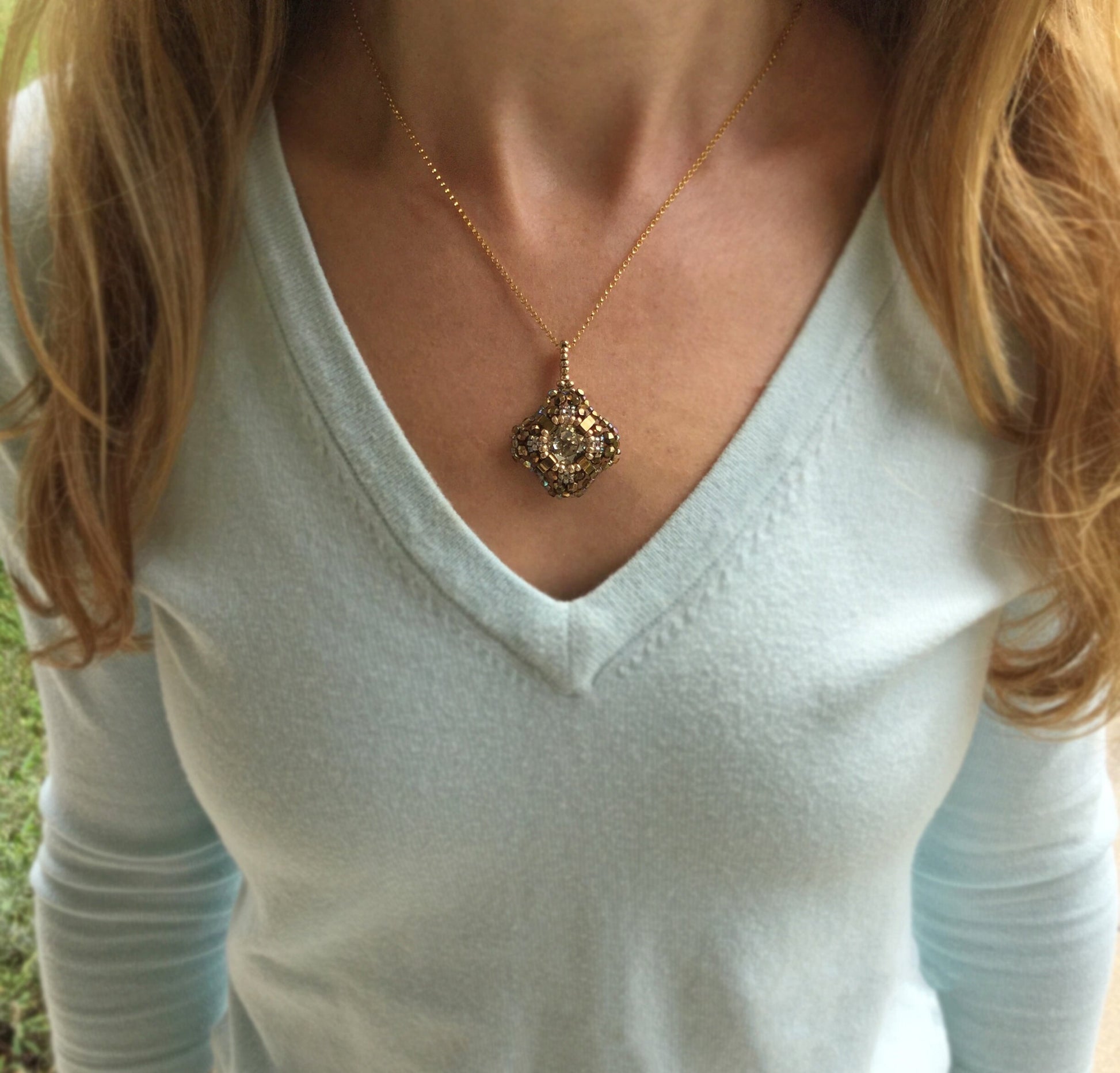 - photo example is of pendant #009 worn with our gold chain.